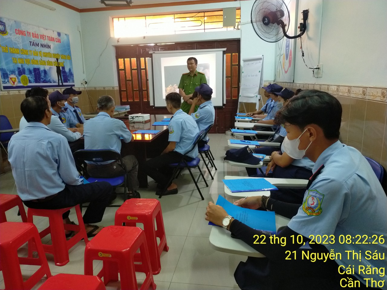 Nhằm duy trì và nâng cao chất lượng dịch vụ bảo vệ, ngày 22/10/2023 Công ty TNHH DVBV Bảo Việt Toàn Cầu đã tổ chức lớp tập huấn nghiệp vụ PCCC định kỳ hằng tháng cho nhân viên bảo vệ tại trụ sở công ty