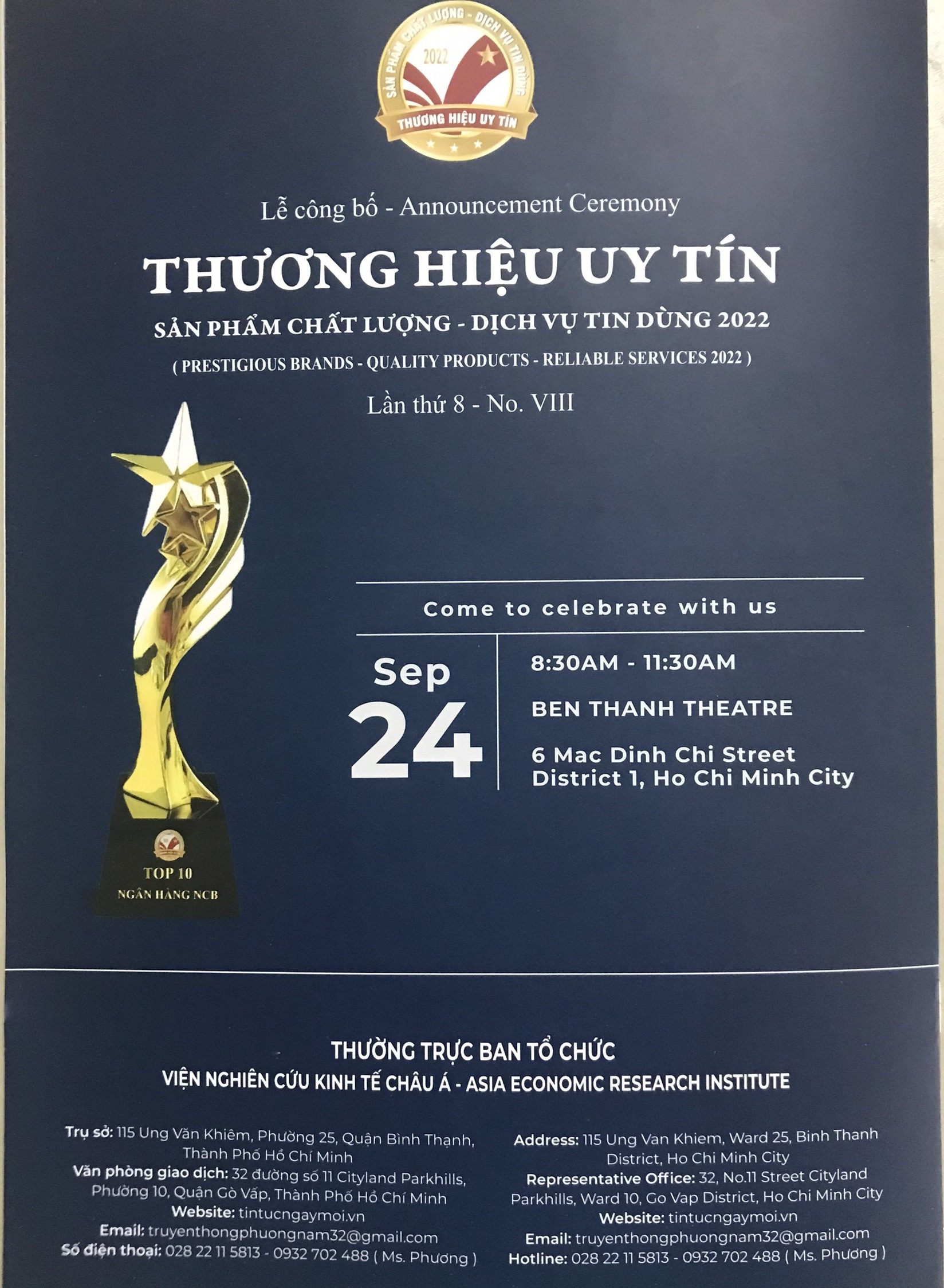 Vào tháng 9 vừa qua, đại diện Công ty Bảo Việt Toàn cầu, ông Nguyễn Tấn Thi - Kiêm chủ tịch Hội đồng thành viên, đã có mặt tại buổi lễ trao giải thương hiệu uy tín - sản phẩm chất lượng - dịch vụ tin dùng lần thứ VII do Liên hiệp Khoa học Phát triển tại Doanh nghiệp Việt Nam, Viện Nghiên cứu Kinh tế Châu Á phối hợp cùng với các cơ quan hữu quan tổ chức, tại nhà hát Bến Thành TP.Hồ Chí Minh.